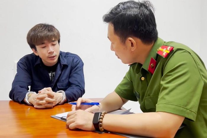 Ca sĩ Chi Dân khi làm việc với điều tra viên. Ảnh: Công an cung cấp