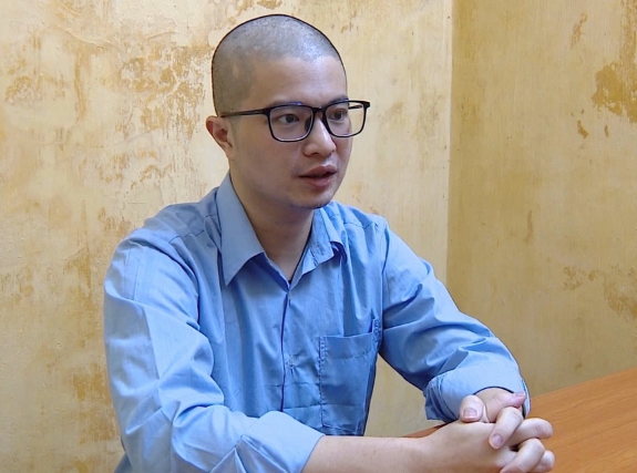 Đối tượng Phó Đức Nam tại cơ quan điều tra - Ảnh: CA TP Hà Nội