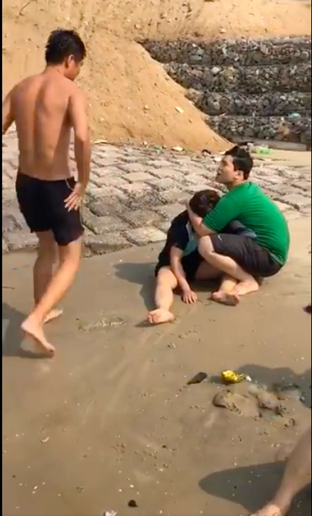 Hình ảnh người đàn ông sơ cứu cho các nạn nhân đuối nước (Ảnh cắt từ clip)