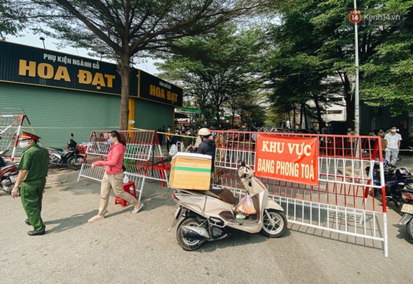 Do khu chung cư có nhiều block với hơn 1.000 dân nên lực lượng chức năng bố trí hàng rào phong toả khá rộng, từ đầu đến cuối chung cư. Một đoạn tuyến đường qua khu vực chung cư cũng được lập hàng rào, tạo ra 2 lớp phong toả rất nghiêm ngặt.
