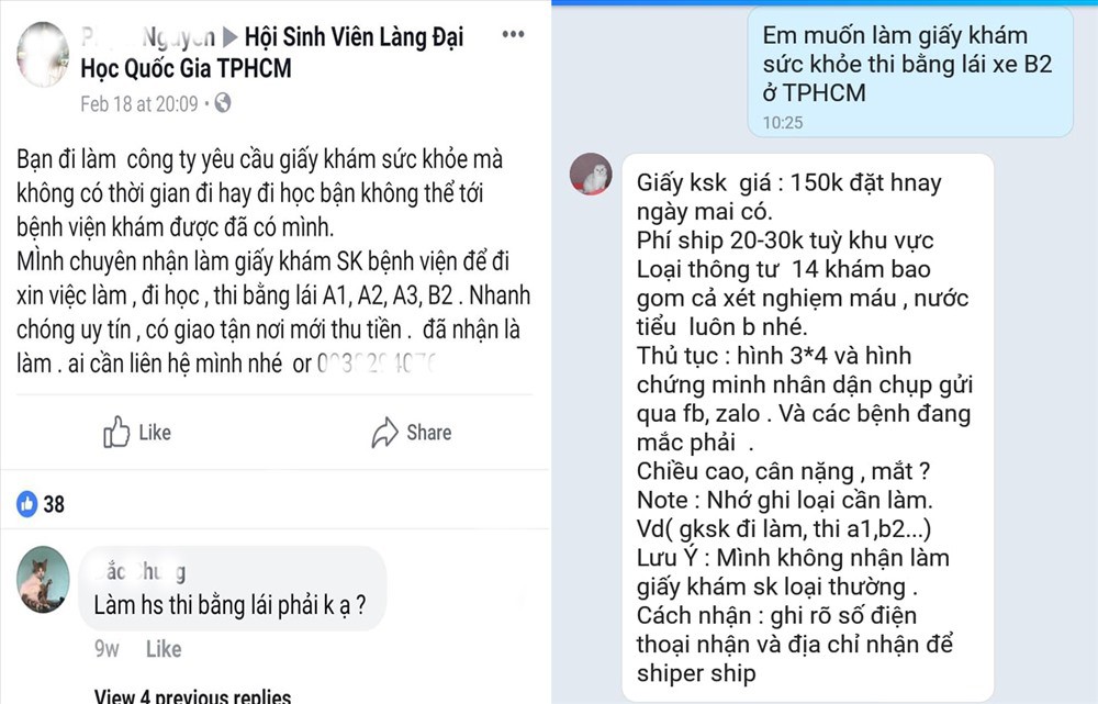 Thời gian gần đây, trên mạng xã hội lại tái diễn tình trạng rao bán giấy khám sức khoẻ, thẻ an toàn lao động, chứng chỉ sơ cấp, tại TP.HCM với lời chào mời hấp dẫn như "cam kết đảm bảo uy tín, nhanh gọn giá hợp lý, bao kiểm tra".