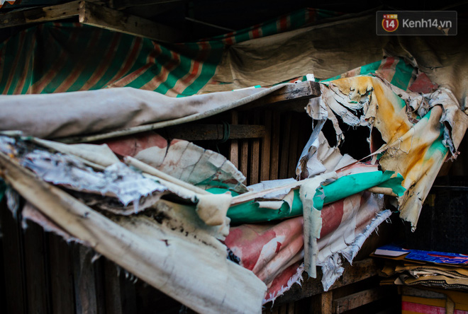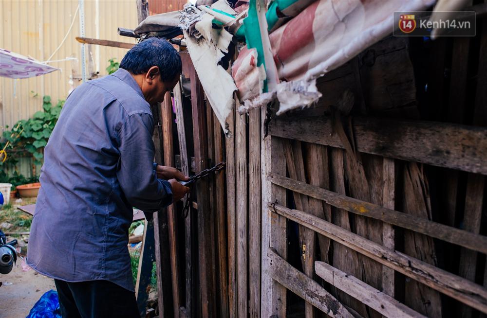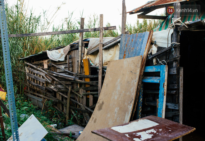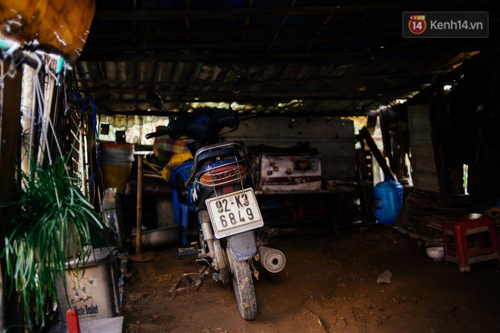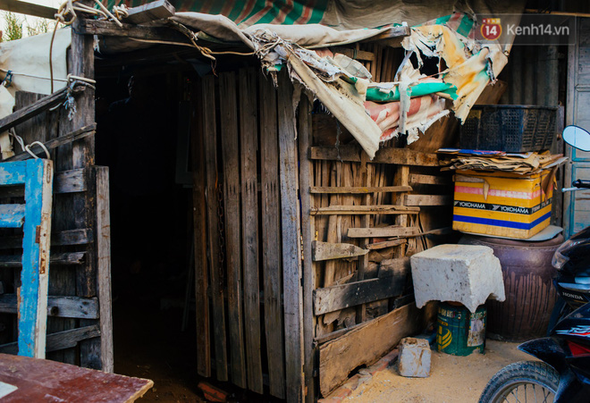 Căn nhà lụp xụp được dựng tạm bằng gỗ vụng và tôn do chú Quân tự tay làm trên nền đất được người ta cho ở tạm.