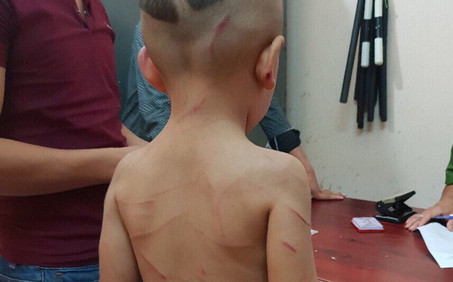 Cháu bé bị thương tích đầy mình.