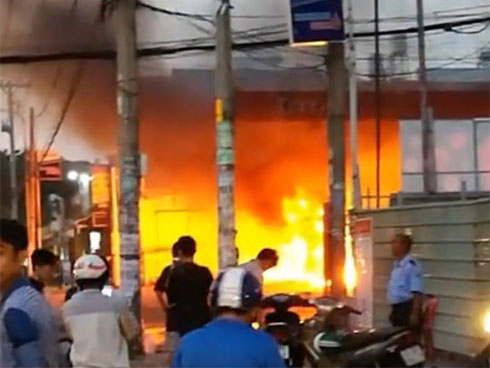 Lửa từ cây xăng trên đường Phan Văn Hớn (quận 12) bùng lên đỏ rực khiến nhiều người dân xung quanh nháo nhào tháo chạy.