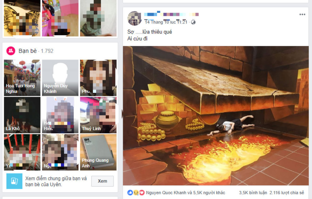 Theo đó, facebook tên N.P.U. đăng tải hình ảnh bản thân nằm bên miệng hố nham thạch với dòng trạng thái “Sợ lửa thiêu quá. Ai cứu với”. Khoảng 1 tuần sau, shop hoa tươi bị cháy và nạn nhân N.P.U. tử vong do ngạt khí.