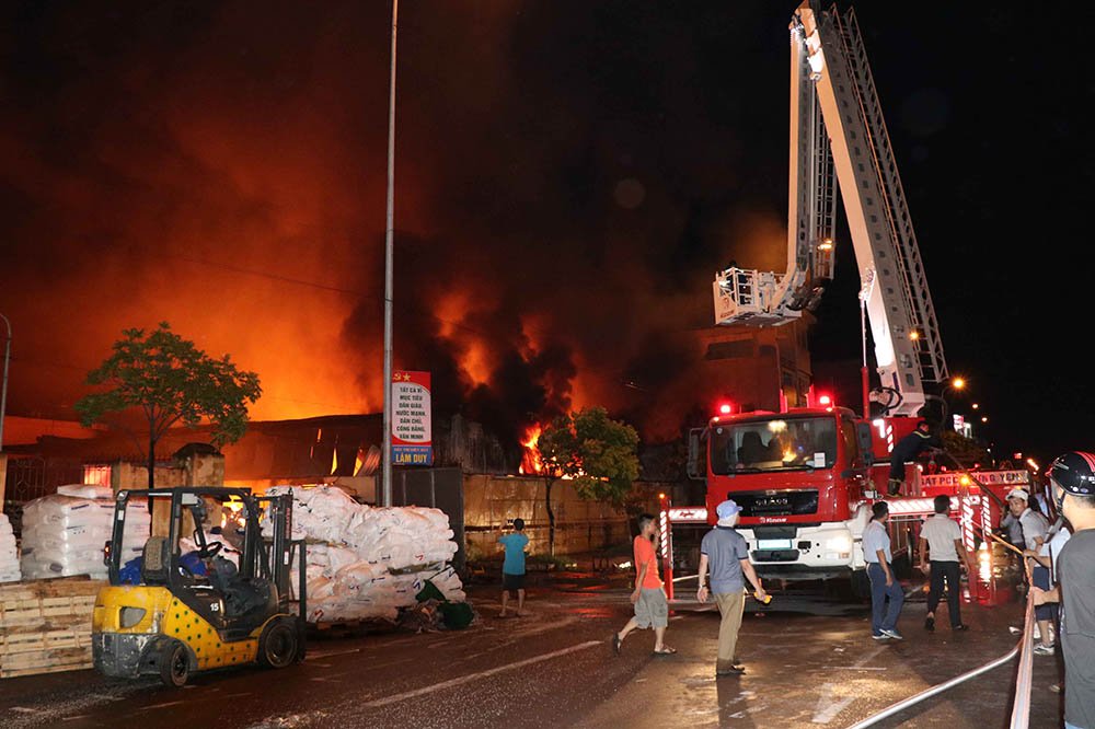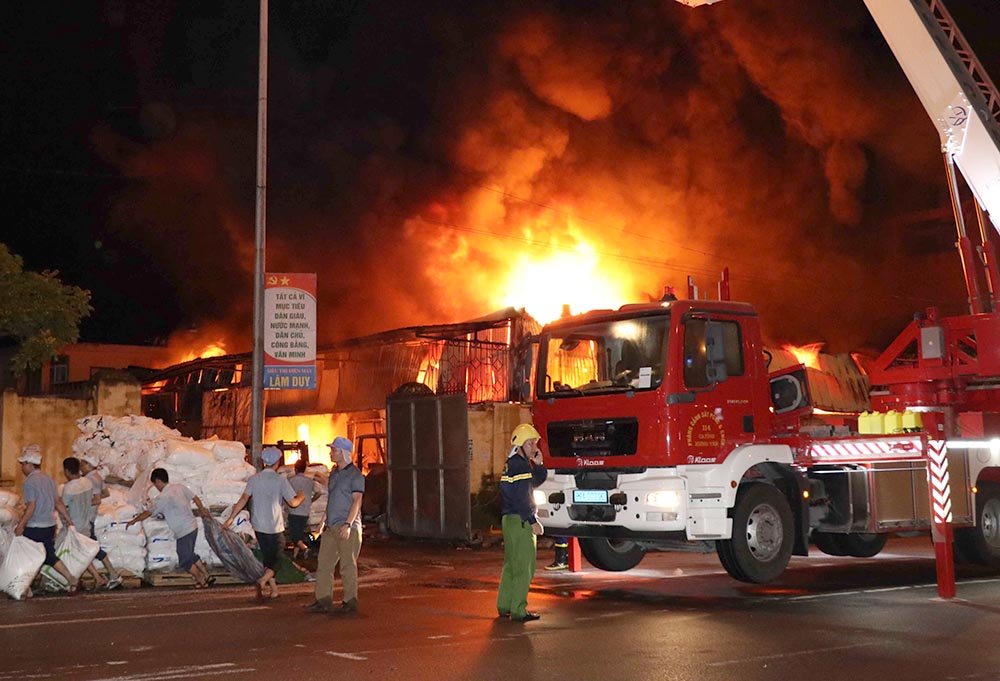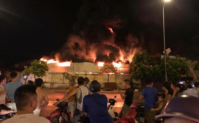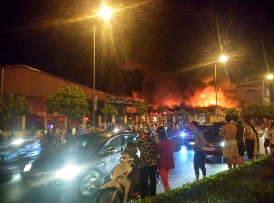 Cảnh sát PCCC Hưng Yên đã huy động hàng chục chiến sĩ cùng nhiều xe nước đến hiện trường. Đến 21h30, các lực lượng vẫn đang tập trung chữa cháy.