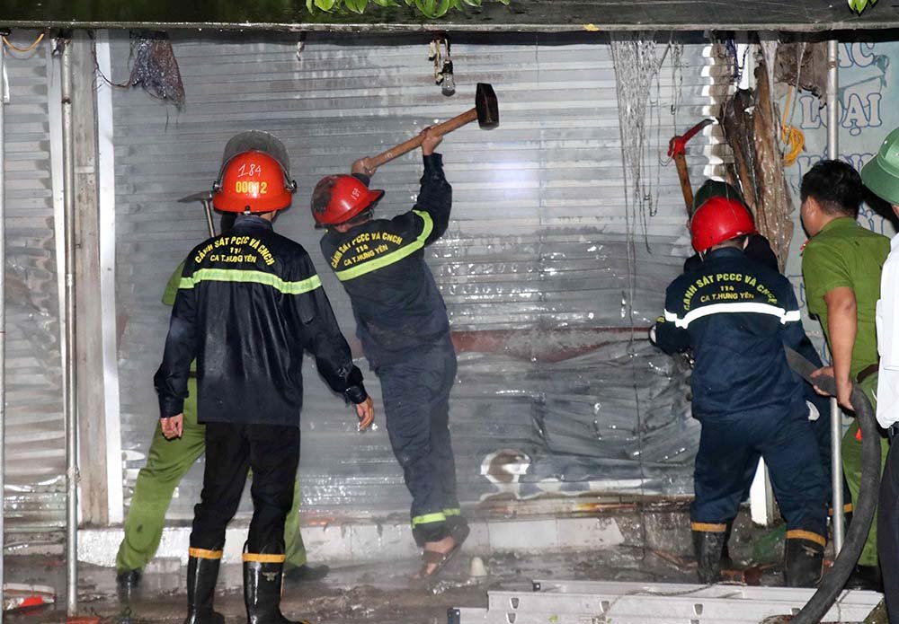 Lực lượng PCCC&CNCH tích cực ngăn không cho đám lửa lan rộng. Ảnh chụp lúc 22h
