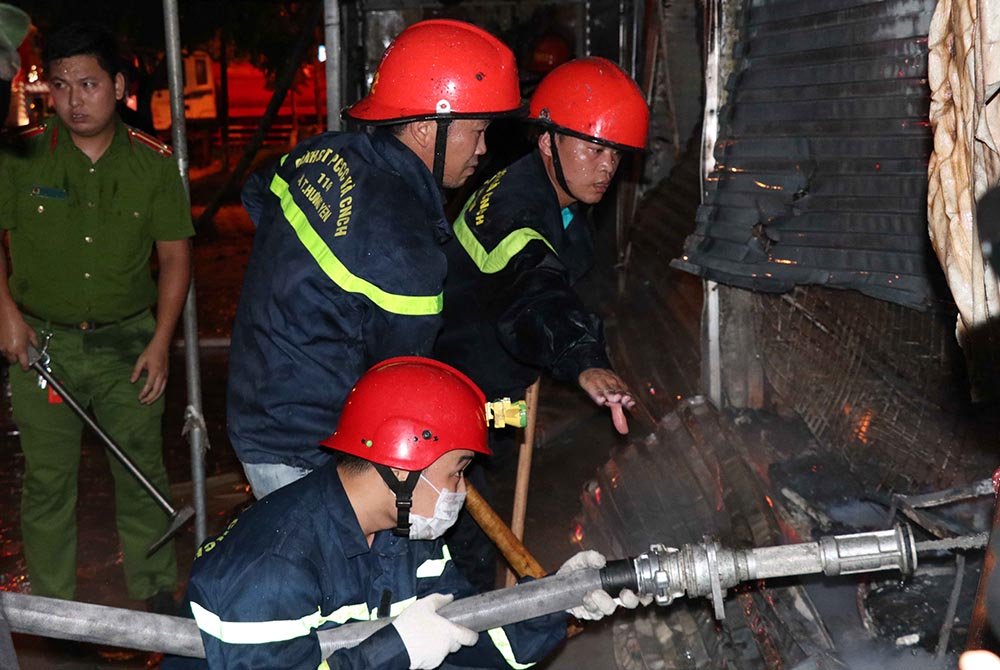 Người dân chứng kiến vụ cháy kể lại: "Tôi đi qua khu chợ khoảng 20h45 thì thấy đám cháy bùng lên dữ dội và có 1-2 xe cứu hỏa có mặt dập lửa. Đến lúc này, đám cháy vẫn chưa được khống chế, lực lượng chức năng đang ngăn không cho đám lửa lan rộng".