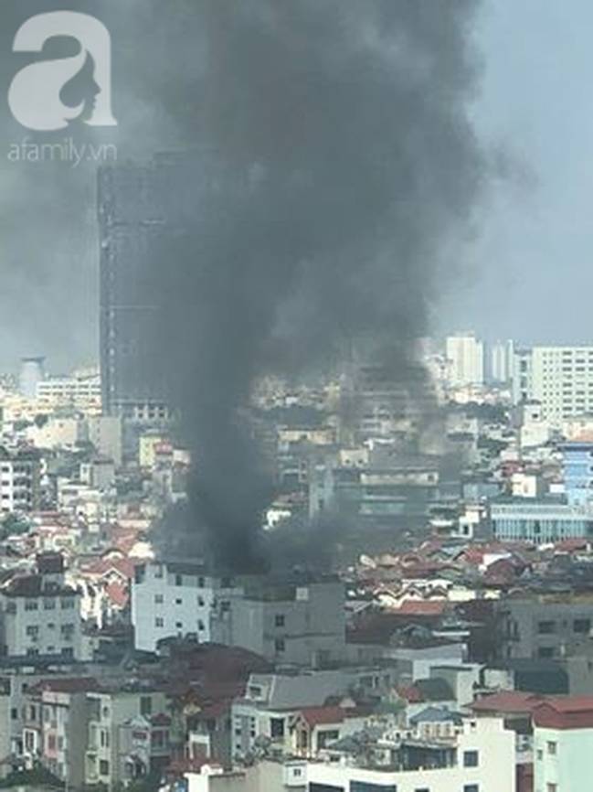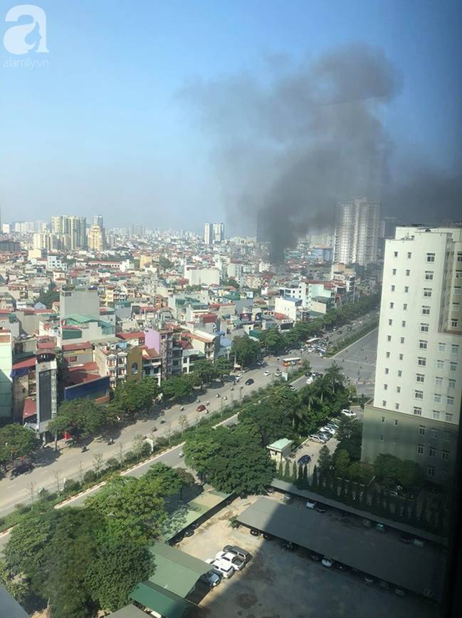 Khói đen bốc cao đến nỗi người dân ở đường Trần Duy Hưng cũng có thể chụp lại hình ảnh vụ cháy rõ ràng.