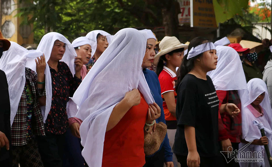 Chứng kiến cảnh người vợ mất chồng con, 2 con gái mất cha ai cũng không cầm được nước mắt. Trong dòng người đưa tiễn, nhiều đôi mắt cay xè, đỏ ngầu, họ bước đi lầm lũi hướng về nghĩa trang.