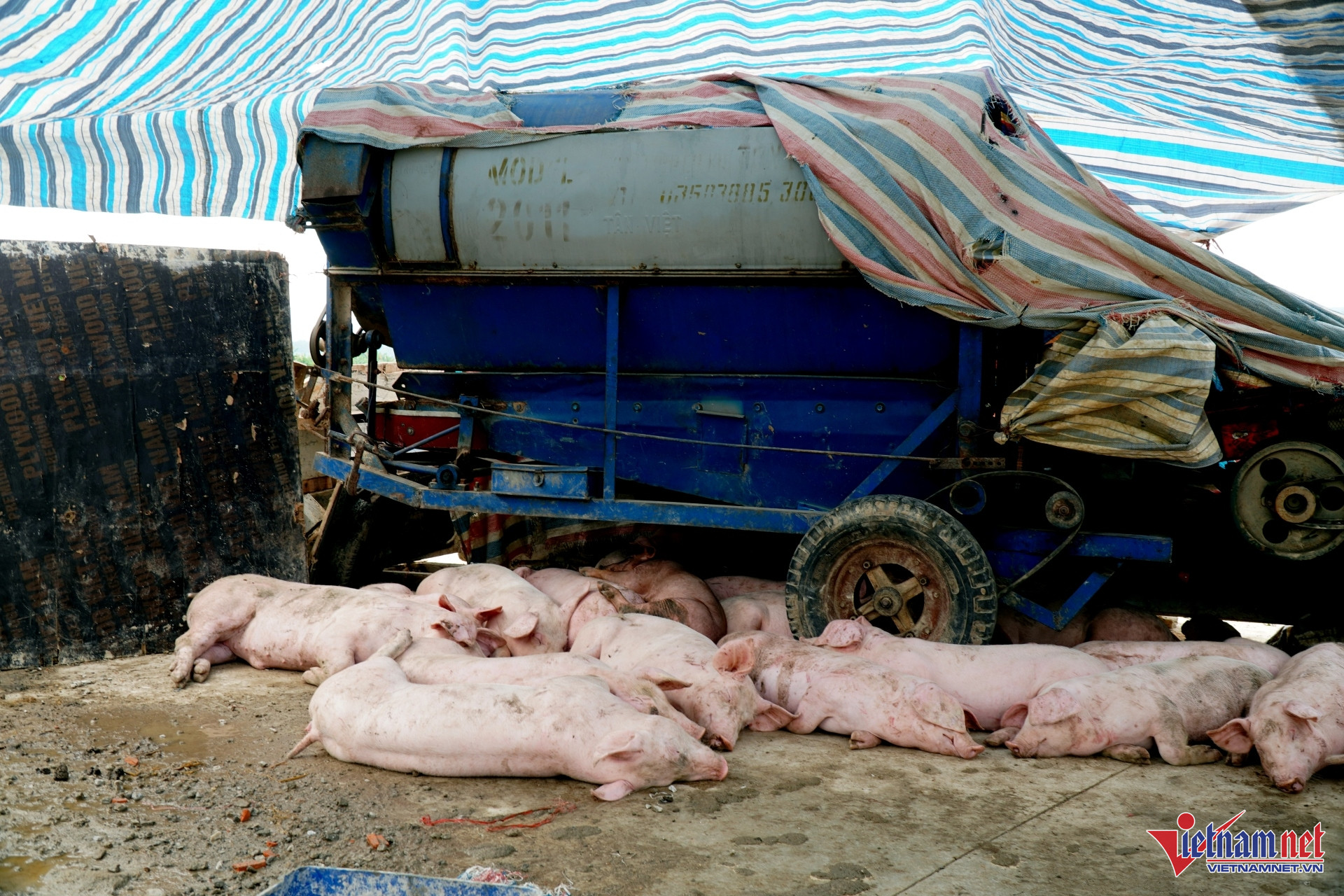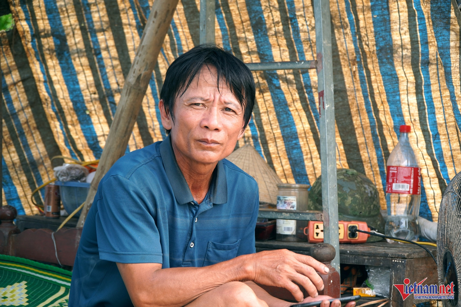 Ngồi bần thần trong chiếc lán dựng tạm trên bờ đê, ông Lê Đăng Hải (SN 1976, thôn Chuế Cầu) cho biết gia đình ông làm trang trại với diện tích khoảng 2ha. Trong đó có hơn 1ha làm ao nuôi cá, còn lại là chuồng trại nuôi lợn, gà, vịt.