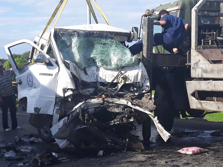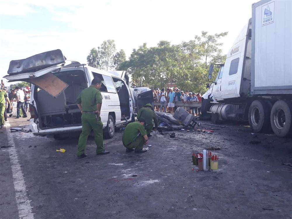 Cú tông trực diện với xe container BKS 51D-411.21, kéo theo rờ-moóc BKS 51R-215.75. khiến 13 người trên xe khách tử vong tại chỗ, 4 người còn lại bị thương.