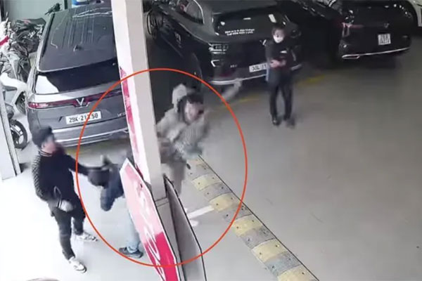 Mới đây trên MXH lan truyền đoạn clip ghi lại cảnh một người đàn ông bị người khác bất ngờ lao đến đạp vào đầu, xảy ra tại một gara ô tô ở Gà Nội. Cú đạp khiến nạn nhân bị ngã ra sàn, ôm đầu đau đớn và nhanh chóng bỏ chạy vào phía trong.