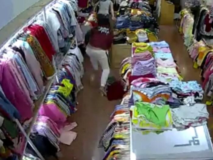 Cận cảnh khuôn mặt hai đối tượng lúc gây án trong cửa hàng quần áo.