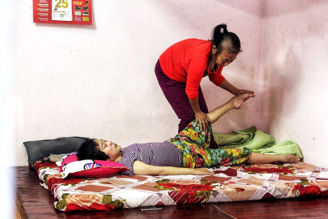 Nằm lâu trên giường khiến cơ thể Hồng lở loét khó chịu. Nhiều lần Hồng cầu xin mẹ cho được chết đi.