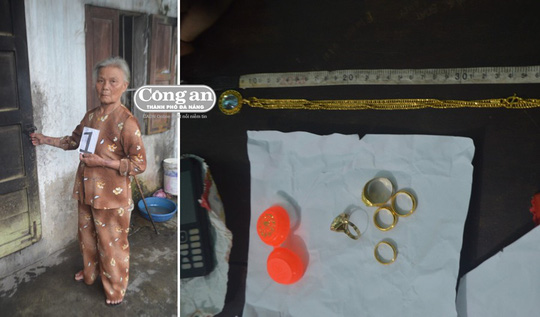 Bà Phi tại hiện trường và số vàng trộm cắp.