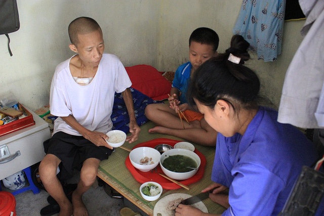 "Tôi với Hiền lấy nhau từ những năm 2007, sống ở dưới quê Hà Nam, đến năm 2012 tôi bị mắc bệnh nên phải chuyển lên đây để tiện cho việc chữa trị. Vợ tôi lên đây xin làm nhân viên quét dọn trong bệnh viện, mỗi tháng kiếm được 3 triệu đồng, nhưng cũng chẳng đủ chi tiêu cho cả nhà hàng tháng nên cuộc sống rất khó khăn" - anh Tha chia sẻ.