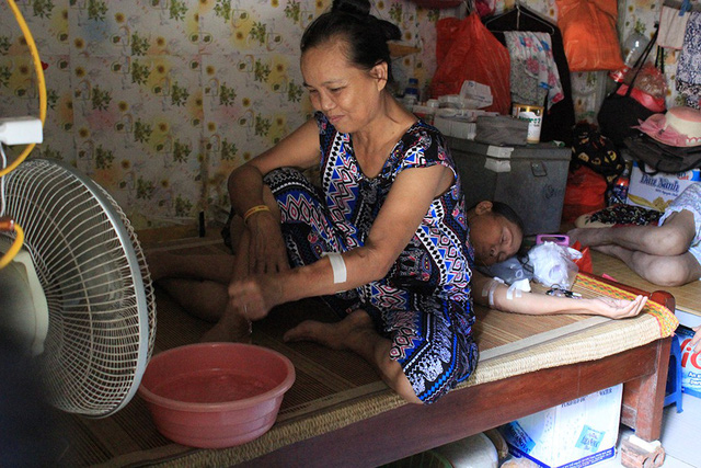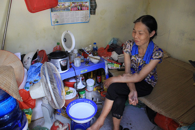 "Phòng trọ của tôi có 3 người nhưng rộng vỏn vẹn chỉ có chưa đầy 9m2, mấy ngày hôm nay nắng nóng, phòng chật hẹp nên lúc nào cũng hầm hập như cái lò vậy. Có những hôm chạy thận về vừa mệt vừa yếu muốn ngủ một tí nhưng không tài nào ngủ nổi, nằm xuống giường nhưng cứ phải chằn chọc đến gần sáng mới có thể chợp mắt được tí" - bà Dung kể.