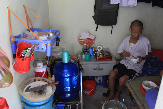 "Mấy hôm nay nắng nóng quá, phòng trọ lại nợp bằng tấm tôn, nên ban ngày ở trong phòng ngột ngạt không thể ngủ nổi, tới tận đêm mới có thể chợp mắt được tí chú ạ. Nắng nóng, đến cả bát cơm nấu xong ăn cũng không nuốt nổi, ăn được một tí rồi lại ngồi thở vì sáng vừa đi chạy thận ở bệnh viện về" - bà Luyến vừa nói vừa chỉ tay vào bát cơm đang chan canh dở đặt trước mặt.