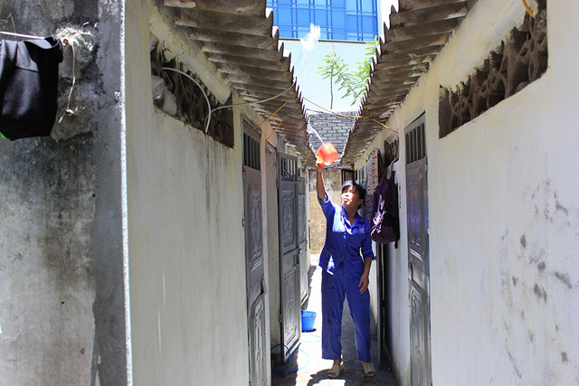 Chia sẻ kinh nghiệm chống nắng trong những ngày thời tiết khắc nghiệt, nắng nóng, bà Dung cho biết, bà phải dùng nhiều chậu nước nhỏ để đặt trong phòng, đặt trước quạt gió để hơi nước bốc lên sẽ dễ chịu hơn, ngoài ra bà Dung còn dùng gáo nước hắt vào mái và tường của phòng trọ để giảm nhiệt độ.