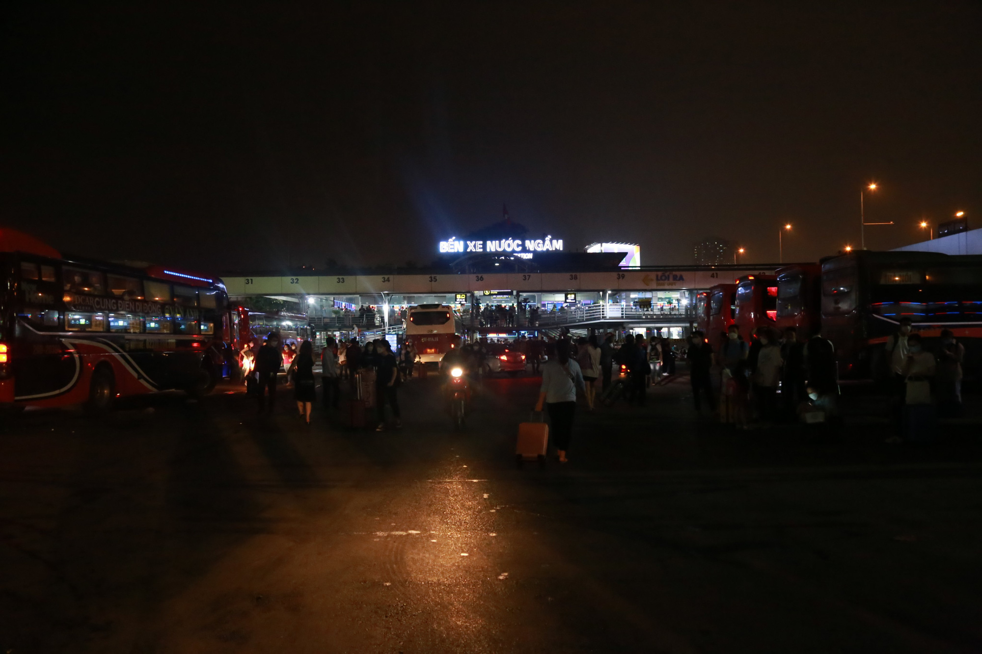 Bến xe Nước Ngầm lúc 22h, lượng người liên tục đổ về để bắt xe về quê.