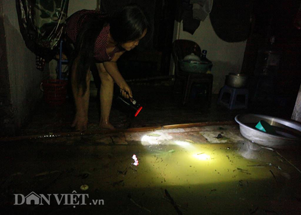 Trong màn đêm, với ánh sáng yếu ớt leo lắt hắt ra từ chiếc đèn pin mới mua, bà Nguyễn Thị Duyên (56 tuổi, thôn Nam Hài) không ngủ được cứ lấy thanh gỗ chắn trước cửa ngăn bèo, rác bẩn trôi vào nhà… mỗi lần lội nước, leo lên giường bà không quên cầm theo ca nước sạch để rửa chân và bôi thuốc. Con cháu bà đã đi ở nhờ hết, nhà chỉ có bà và người con trai. Con trai bà chạy công nông cho xã, hôm nào có điện thì về ngủ, không thì ngủ ở xã.