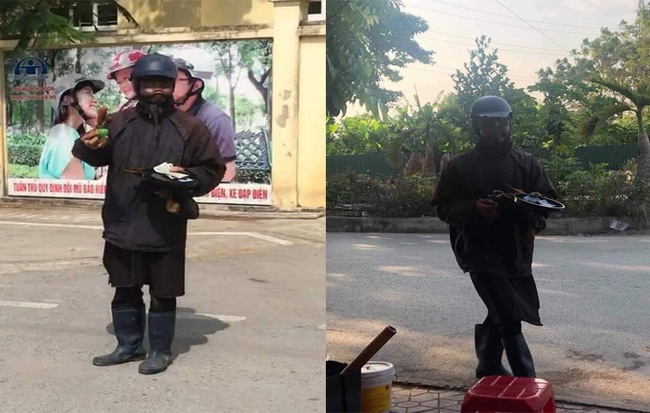 Trước đó, trên mạng xã hội Facebook lan truyền hình ảnh người đàn ông mặc bộ đồ màu đen, mặt bôi đen xì, tay cầm theo xúc xích, đầu gà đi xin tiền khắp nơi khiến nhiều người hoang mang, lo sợ.
