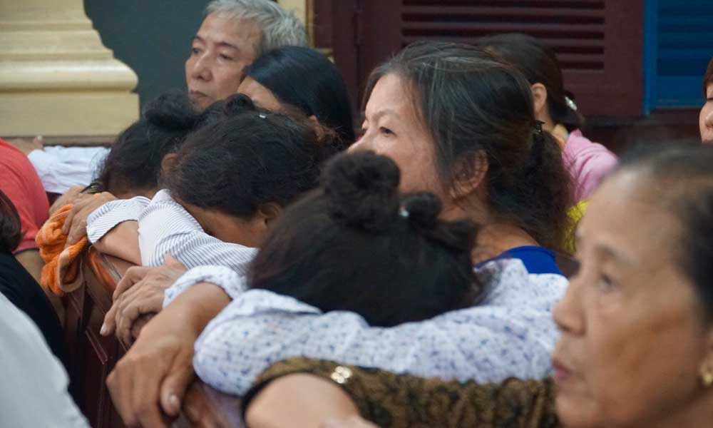 Gia đình nạn nhân khóc ngất khi nghe bị cáo khai quá trình sát hại. Ảnh: Văn Châu