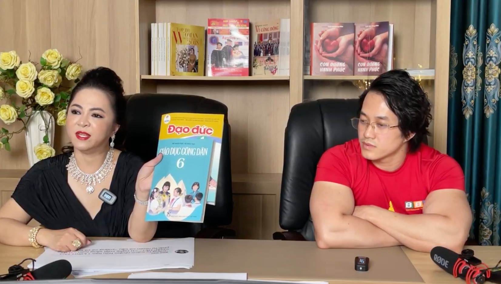 Trên sóng livestream tối ngày 14/5, bà Nguyễn Phương Hằng gây sốc khi xin lại 2 quyển Giáo dục công dân lớp 6 và Đạo đức lớp 1 mà dàn nghệ sĩ Cát Phượng, Huỳnh Phương, Quách Ngọc Tuyên, Hoàng Mèo... từng mang tặng cho Duy Nguyễn sau vụ lùm xùm liên quan đến cố nghệ sĩ Chí Tài.