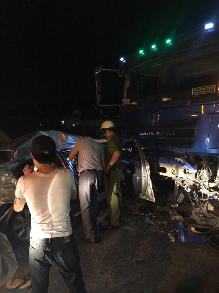 Hậu quả vụ tai nạn làm 2 dì cháu là bà Minh và cháu Nam tử vong tại chỗ, 3 người còn lại trên xe ô tô con bị thươn nặng. Tại hiện trường, chiếc ô tô dẹp búm, biến dạng hoàn toàn.