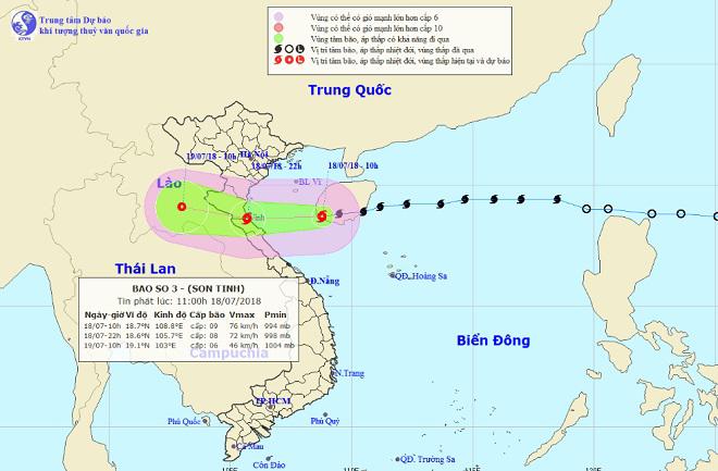 Lúc 13h, vị trí tâm bão số 3 ở vào khoảng 18,8 độ Vĩ Bắc; 108,0 độ Kinh Đông, ngay trên vịnh Bắc Bộ và cách đất liền các tỉnh từ Thanh Hóa đến Quảng Bình khoảng 240km về phía Đông. Sức gió mạnh nhất vùng gần tâm bão mạnh cấp 8-9 (60-90km/giờ), giật cấp 11.
