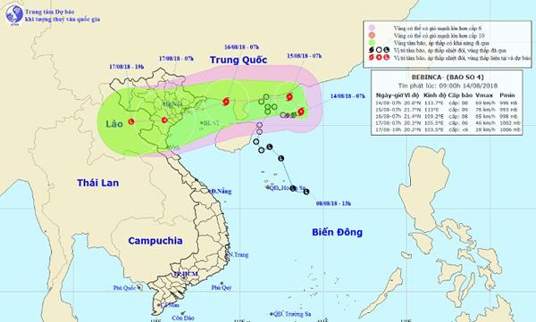 Lúc 13h chiều nay 14/8, vị trí tâm bão số 4 ở vào khoảng 21,0 độ Vĩ Bắc; 113,7 độ Kinh Đông, trên vùng biển phía Nam tỉnh Quảng Đông (Trung Quốc).