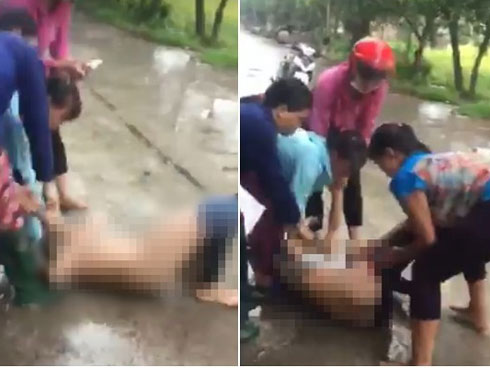 Sau màn chửi mắng, người vợ và những người đi cùng đã lao vào kéo “kẻ thứ 3” ra giữa đường. Người giữ tay chân, người lột quần áo mặc cho cô bồ la hét, giãy giụa. Lúc này, người dân đã chạy lại can ngăn và giải thích đánh ghen như vậy là vi phạm pháp luật.