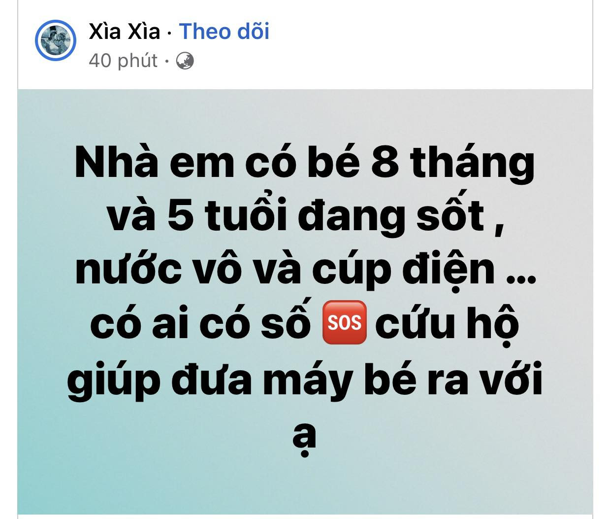 Tài khoản có tên Đoàn Thị Mỹ Hạnh cầu cứu với dòng trạng thái ở Facebook: “Mới vừa sinh 2 hôm cùng bé ướt hết rồi. Có đội xe bán tải nào có thể giúp chở các mẹ và các bé qua quán Quang Trung với được không. Giờ ngoài đường xe bán tải mới đi được ạ! Mọi người giúp các con với ạ! Ướt hết”.