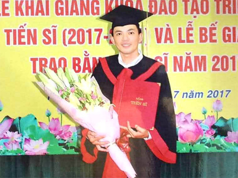 Ông Thịnh khi nhận bằng tiến sĩ.