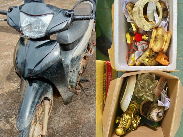 Tại đây, cơ quan chức năng phát hiện nhiều hiện vật như tượng tỳ hưu, tượng thần tài, tương tự các vật tâm linh đã được tìm thấy ở hiện trường nơi phát hiện 2 bộ xương khô.