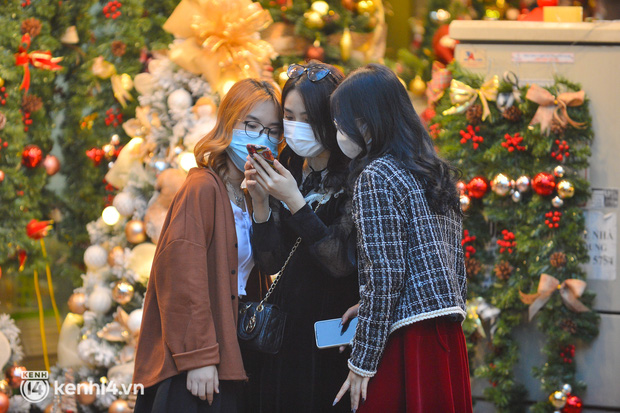 Theo ghi nhận của chúng tôi, còn 1 ngày nữa mới tới đêm Noel, tuy nhiên, phố Hàng Mã (phường Hàng Mã, Hoàn Kiếm, Hà Nội) đã đông kín người qua lại