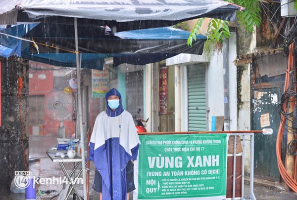 Hà Nội mưa trắng trời, cán bộ đội mưa bám chốt kiểm soát người ra vào khu vực vùng xanh-2