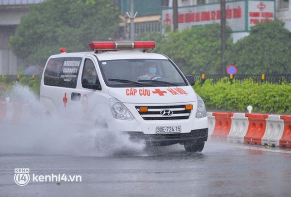 Do trong thời gian giãn cách xã hội nên đường phố Hà Nội khá vắng vẻ, chủ yếu vẫn là những người giao hàng đội mưa di chuyển cho kịp thời gian của khách hàng
