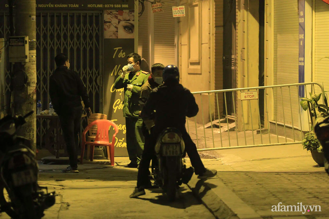 Lực lượng chức năng phong toả con ngõ trên phố Nguyễn Khánh Toàn, Hà Nội.