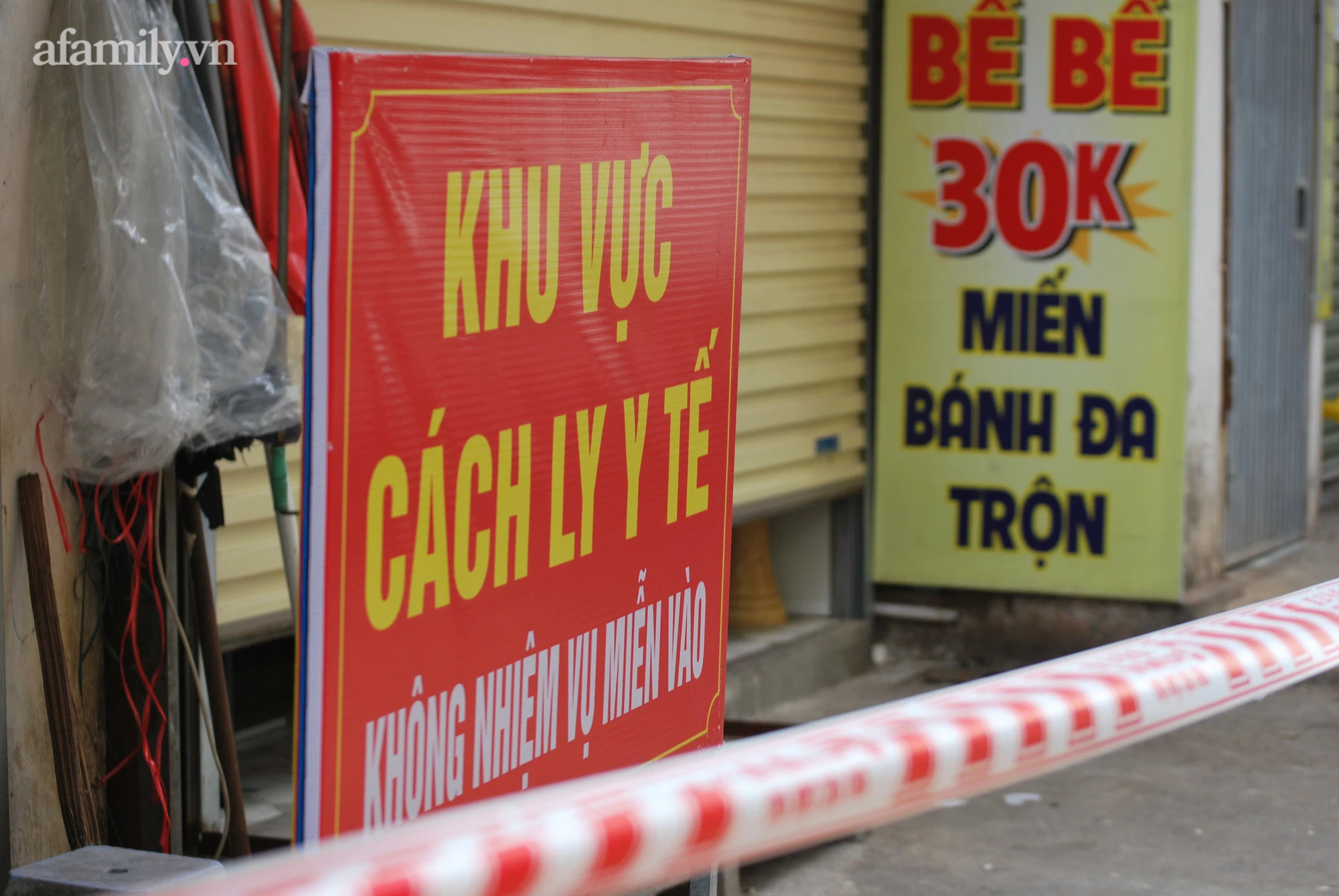 Theo ghi nhận của chúng tôi, một số hộ gia đình mặt phố ngay cạnh cửa hàng 58 Lĩnh Nam hiện đã được lệnh phong tỏa, "nội bất xuất, ngoại bất nhập". Phía bên ngoài được ngăn cách bởi hàng rào an ninh và biển cảnh báo, luôn có lực lượng công an, dân phòng canh gác.