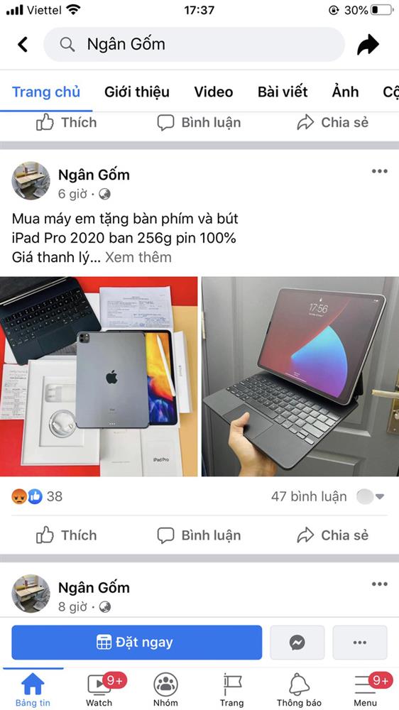 Trong đó, fanpage Ngân Gốm có hơn 60.000 người like. Trên fanpage này thường rao bán nhiều mặt hàng nhập khẩu như đồ gia dụng, điện thoại, iPad, xe đạp, ghế mát xa,… với giá rẻ chỉ bằng một nửa hoặc thậm chí 1/3, 1/4 so với giá trên thị trường.