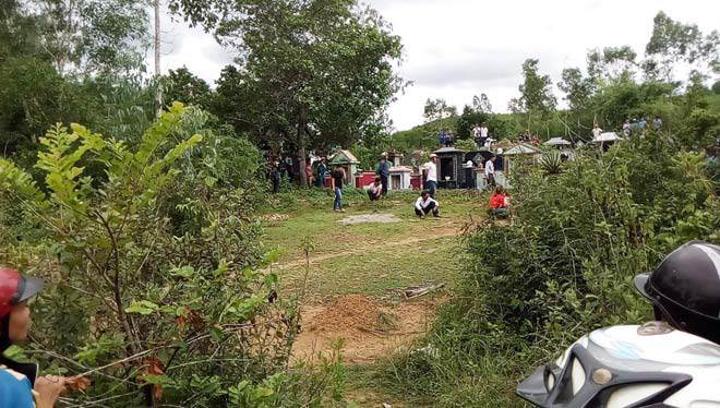 Nghe tiếng hô hoán trong nghĩa địa người dân địa phương chạy vào kiểm tra thì thấy cảnh tượng khủng khiếp, 3 nạn nhân đã tử vong trong đó nhiều bộ phận trên cơ thể bị biến dạng nghi do bị vật cứng đập.