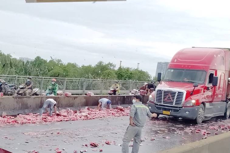 Khoảng 16h ngày 25/8, nam tài xế khoảng 45 tuổi lái xe tải chở nước ngọt trên cầu Phú Mỹ, hướng quận 7 đi TP Thủ Đức.