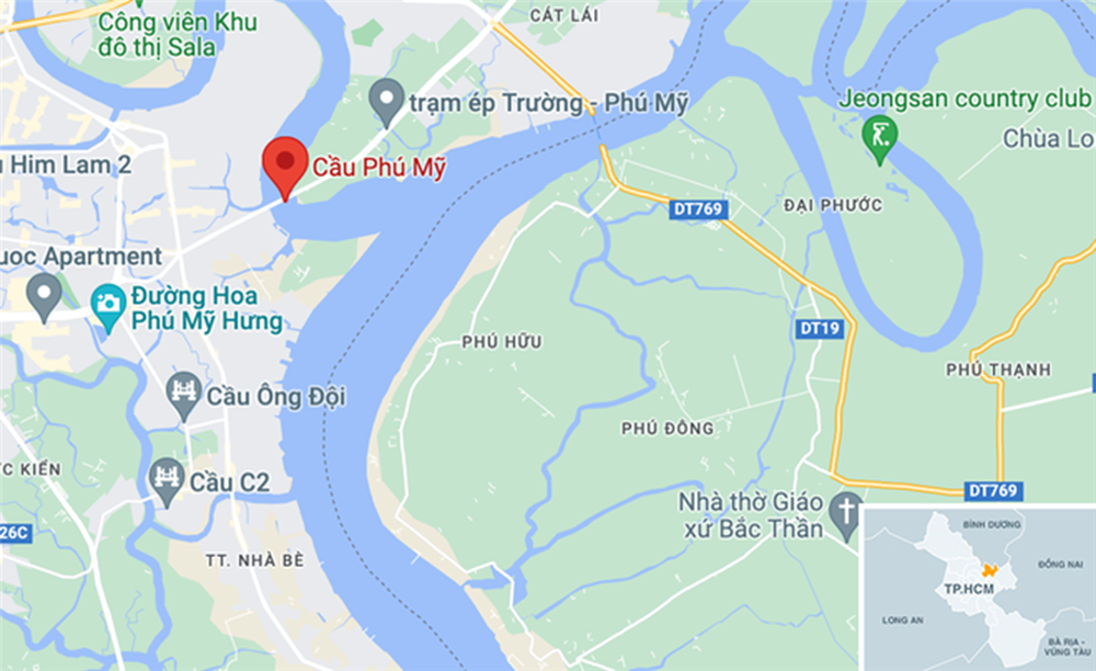 Vụ tai nạn xảy ra trên cầu Phú Mỹ, phường Thạnh Mỹ Lợi, TP Thủ Đức. Ảnh: Google Maps
