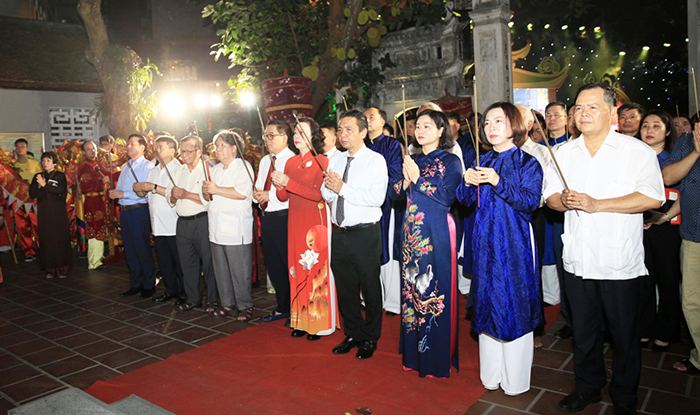 Các đồng chí lãnh đạo Trung ương, thành phố Hà Nội dâng hương tại đền thờ thần Đồng Cổ
