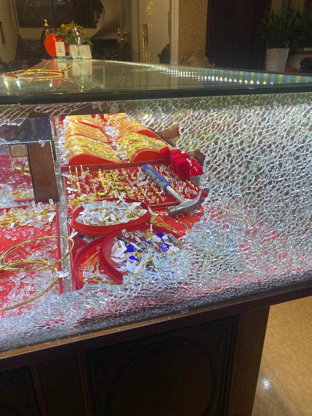 Lúc này, lợi dụng sự sơ hở của chủ tiệm vàng, một nam thanh niên bịt kín mặt, điều khiển ô tô chưa rõ BKS dừng trước cửa tiệm, cầm búa đi vào rồi bất ngờ đập vỡ kính, lấy đi một số vàng rồi bỏ chạy.