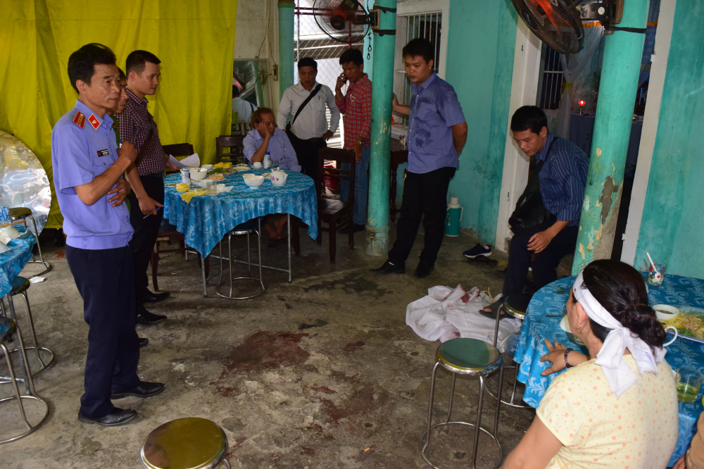 Trong lúc mọi người đang tất bật làm lễ cúng cho ông L.V.T thì Lê Viết Thịnh đột ngột cầm dao từ dưới bếp xông lên nhà cứa cổ ông D. Thấy thế, mọi người nhanh chóng cầm máu và đưa ông D. đi cấp cứu nhưng ông này không qua khỏi.