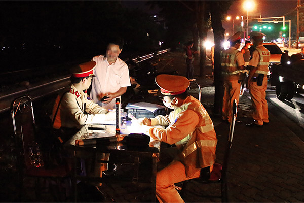 Tổ công tác đã kiểm tra nồng độ cồn của tài xế P.Đ.H. (48 tuổi, trú TP Tam Kỳ, Quảng Nam). Kết quả kiểm tra cho thấy tài xế H. có nồng độ cồn mức 0,243mg/lít khí thở và bị lập biên bản vi phạm nồng độ cồn khi lái xe.