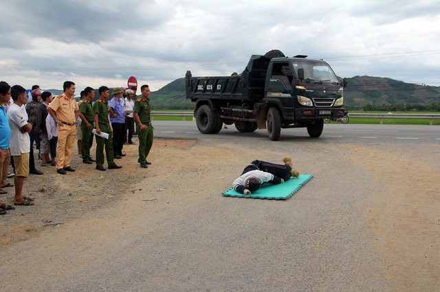 Công an huyện Kỳ Anh dựng lại hiện trường vụ án tài xế xe ben cán chết nam sinh vào ngày 11/8/2016